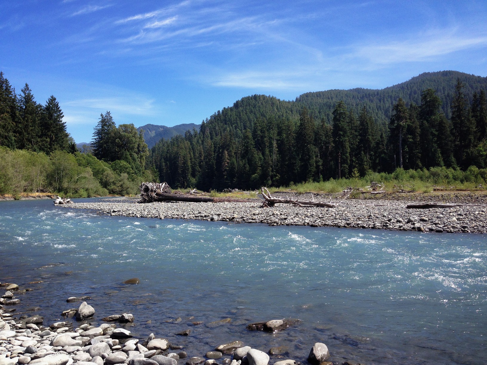 We could hear music from the Hoh River long before we reached this rocky beach in the Olympic National Park.  The water literally sang as it rushed over the flat stones and around large boulders and dead trees blocking it’s path.  Up and down the river the sounds evolved in a natural progression leading from the mountains to the ocean.