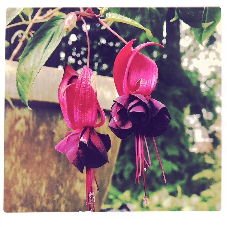 Usually by this time our summer annuals have given up in the cold and my outdoor pots are filled with evergreen branches and white lights illuminating the long nights and filling space until spring. This year I didn’t want to throw away perfectly good plants that were still blooming so as a result we still have pots full of geraniums, fuchsias and even some pretty yellow begonias shining brightly by my back door.  Surprise!